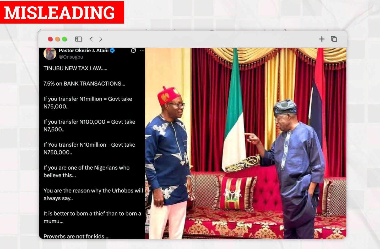 CLAIM: Nigeria’s New Tax Law Charges 7.5 Percent On All Bank Transfers