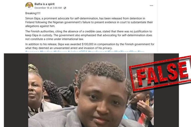 On December 18, 2024, a facebook page Biafra is a spirit (Ofo na Ogu) made a post using Simon Ekpaâs picture with the claim that the Finnish government had released and offered a hundred thousand dollars in compensation for what they deemed an unwarranted arrest and invasion of privacy to. The caption on the post […]
