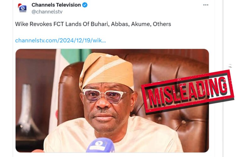 On December 19, 2024, a popular independent news and media television channel in Nigeria, Channels Television, posted a news article on its verified X handle. The post contained a picture of the Minister of the Federal Capital Territory, FCT, Honorable Nyesom Wike, with the claim that he has revoked lands belonging to former President, Muhammadu […]