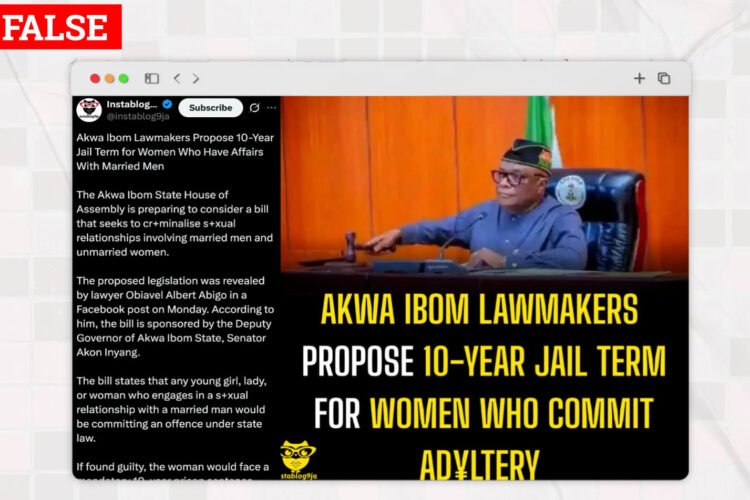 Did The Akwa Ibom State House Of Assembly Propose A 10-Year Jail Term For Adultery? On January 12, 2026, popular Nigerian news blog @instablog9ja posted a claim on X, stating that lawmakers in the Akwa Ibom state House of Assembly have proposed a 10 year jail term for single women who have affairs with married […]