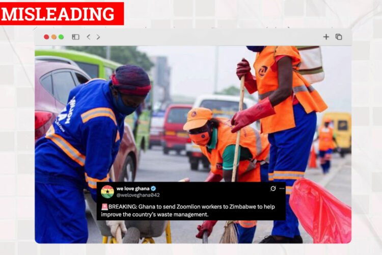 The claim that Ghana is sending private waste company, Zoomlion workers to Zimbabwe is MISLEADING.