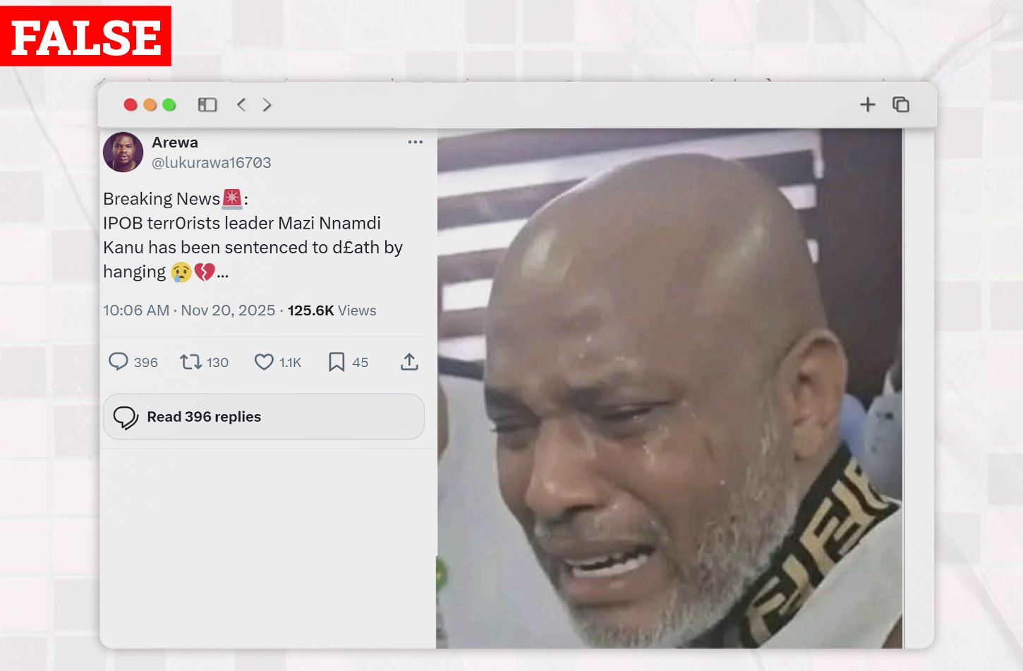 Was Nnamdi Kanu Sentenced To Death By Hanging? On November 20, 2025, an X handle claimed that the leader of the proscribed Indigenous People Of Biafra, IPOB, Mazi... Read more.