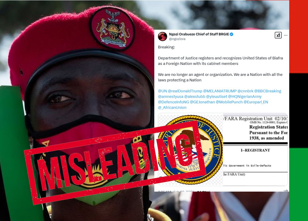 Does Biafra’s Registration With The U.S. Justice Department Implies It Is Recognised As A Sovereign Nation? A post on X claims that the United States of Biafra... Read more.