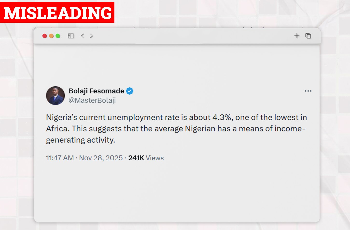 Is Nigeria’s Current Unemployment Rate At 4.3%, The Lowest In Africa? An X user @MasterBolaji has claimed that Nigeria’s current unemployment rate at 4.3%, is... Read more.