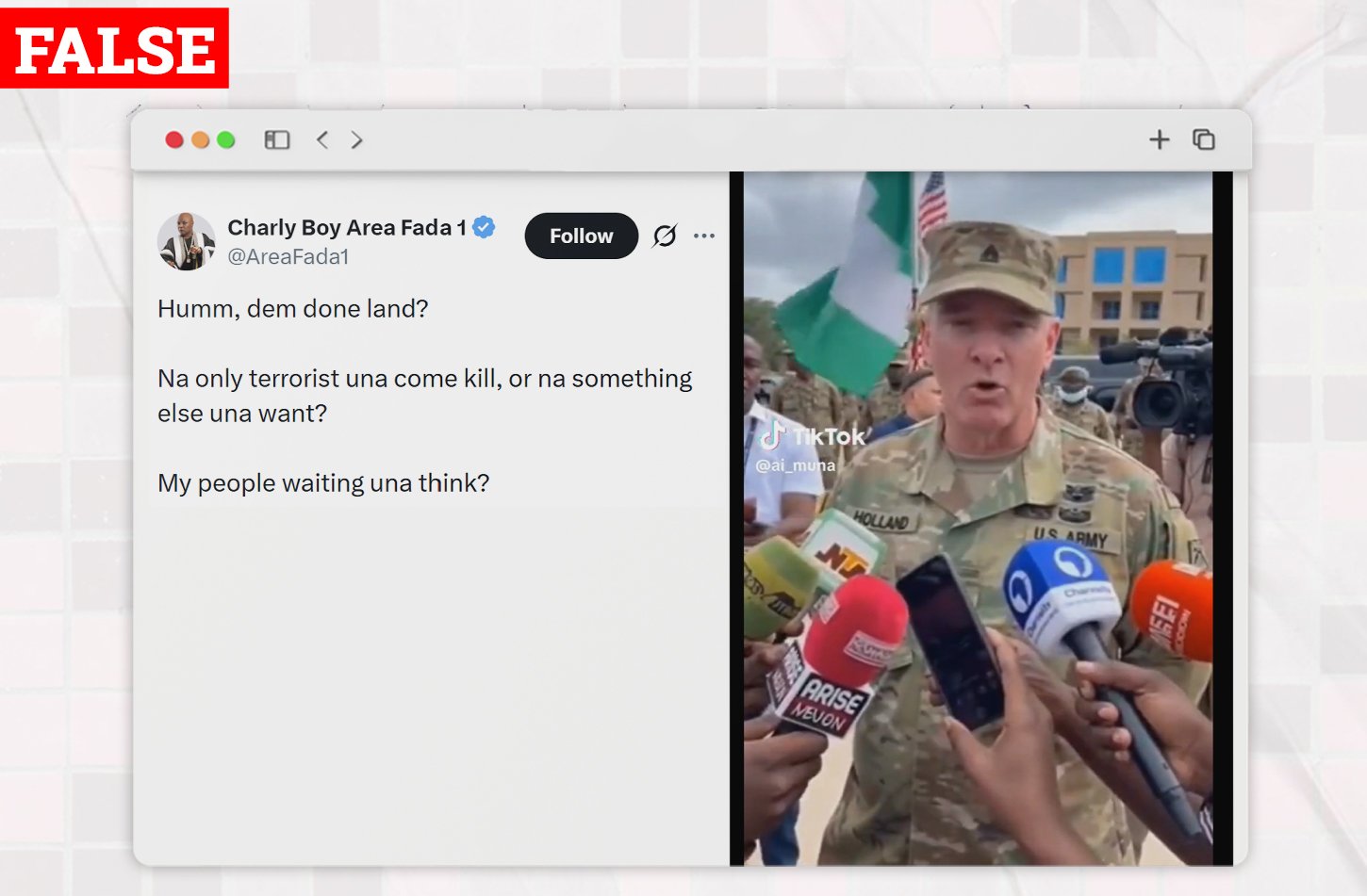 Video claiming the U.S. military is in Nigeria is false; analysis shows it is AI-generated. Nigerian troops remain in charge.... Read more.