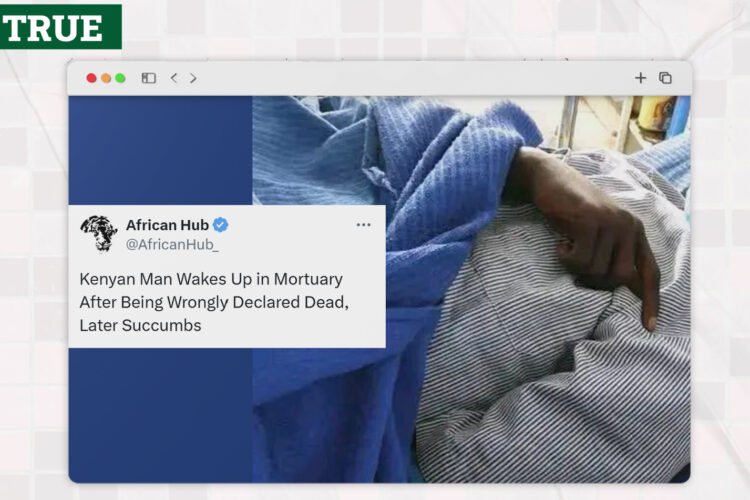 CLAIM: Kenyan Man Wakes Up At Mortuary After Being Declared Dead A verified X blog @AfricanHub_ posted a claim that a Kenyan man woke up in the mortuary after being wrongly declared dead. The post which surfaced online on September 10, 2025, is captioned, “Kenyan Man Wakes Up in Mortuary After Being Wrongly Declared Dead, […]