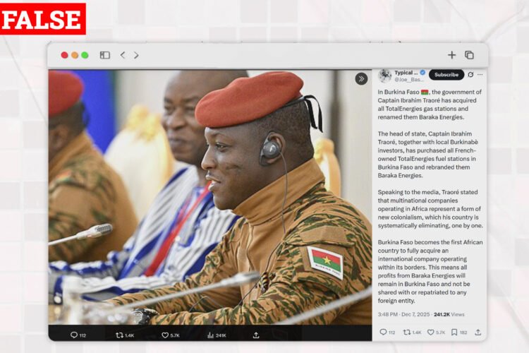 Has Burkina Faso Acquired All TotalEnergies Gas Stations In The Country? On December 7, 2025 an X user, @Joe_Bassey made a claim that the government of Captain Ibrahim Traoré personally acquired all TotalEnergies gas stations in Burkina Faso, rebranded them Baraka Énergies, and declared that Burkina Faso is the first African country to fully acquire […]