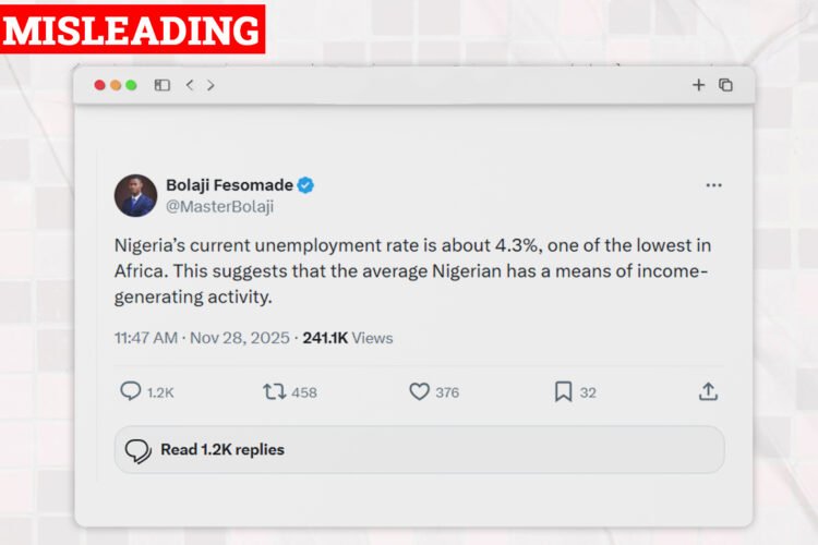 Is Nigeria’s Current Unemployment Rate At 4.3%, The Lowest In Africa? An X user @MasterBolaji has claimed that Nigeria’s current unemployment rate at 4.3%, is one of the lowest in Africa. Their post reads, “Nigeria’s current unemployment rate is about 4.3%, one of the lowest in Africa. This suggests that the average Nigerian has a […]