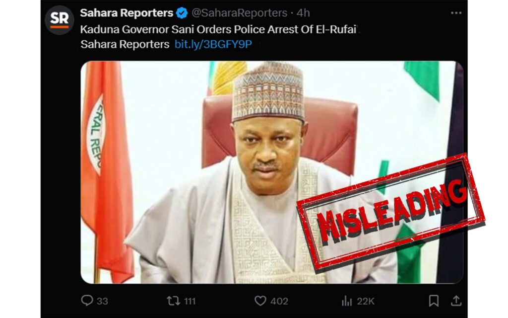 On January 1, 2025, Sahara Reporters, a prominent Nigerian news outlet, made a post on X claiming that former Kaduna State Governor, Nasir El-Rufai, had been arrested on the orders of the current Governor of Kaduna State, Uba Sani.