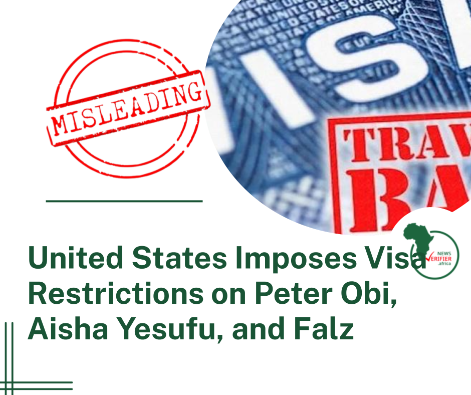 The claim that Peter Obi, Aisha Yesufu, and Falz have been placed on visa restriction by the United States Government is MISLEADING. The United State Government is yet to publish the names of Nigerians placed on visa restriction.