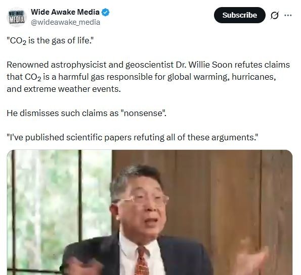 Dr Willie Soon argues that CO₂ is not a significant driver of recent climate change and instead emphasises natural factors like solar variability. These views are not supported by the broad scientific community and are at odds with the large body of peer-reviewed research. In scientific terms, they are considered minority positions not backed by the weight of evidence.
