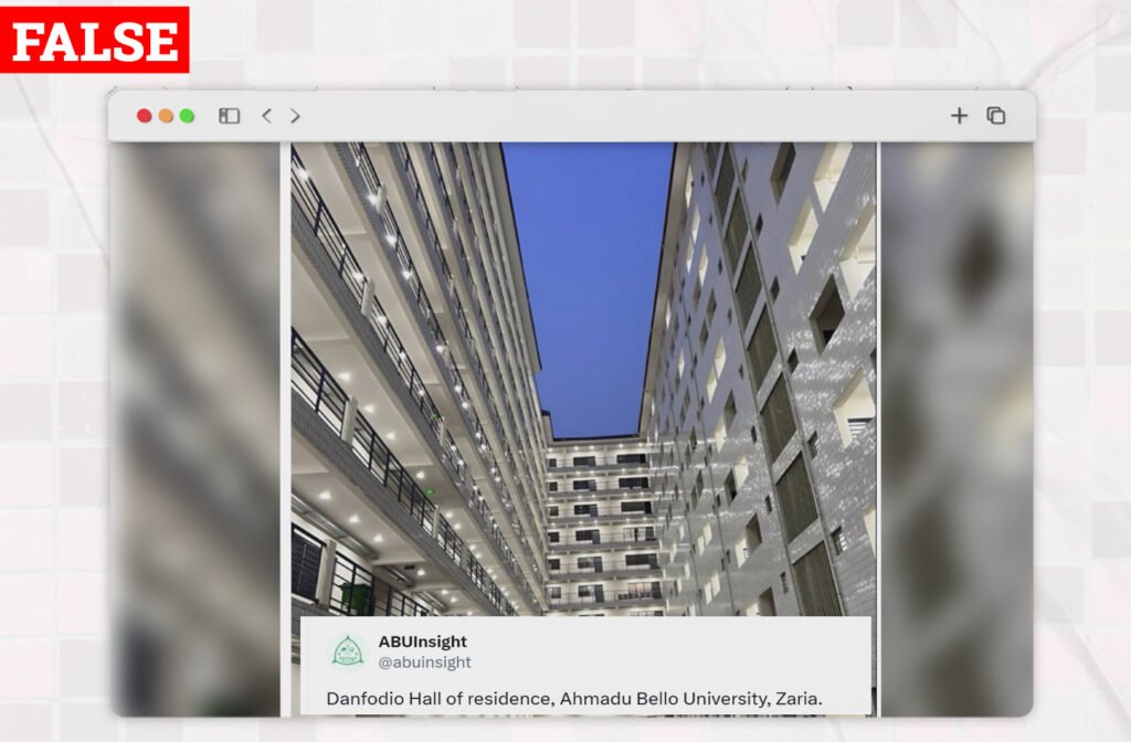 On October 22, 2025, an X user @ABUInsight posted an image claiming it is the Danfodio Hall of Residence, Ahmadu Bello University, Zaria. The post had an image of an ultra modern story building dormitory, with the caption “Danfodio Hall of residence, Ahmadu Bello University, Zaria”