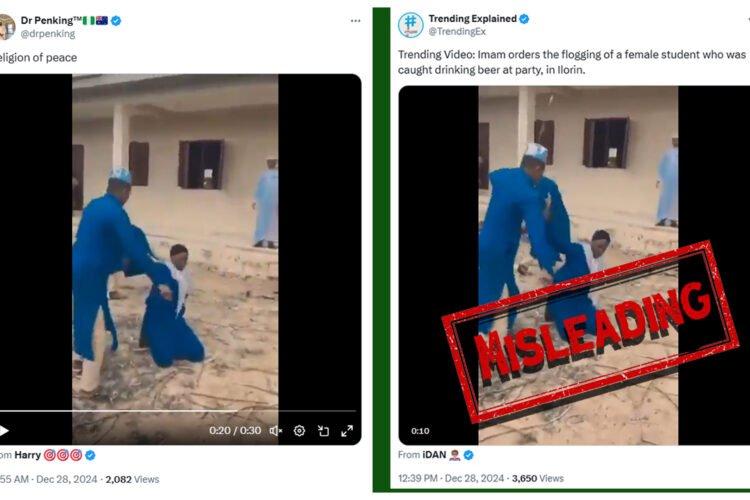 A video shared by X user, @dangbanamanager and reposted by a popular account that shares trending news on the platform, @TrendingEx claims that an Imam ordered the flogging of a female student in Ilorin, Kwara State, for allegedly drinking beer at a party. @TrendingEx reposted the video with the caption, ‘Trending Video: Imam orders the […]