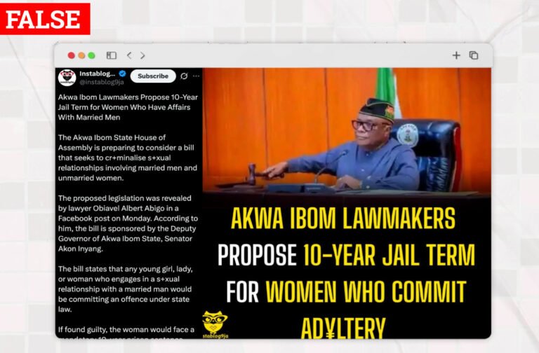 Did The Akwa Ibom State House Of Assembly Propose A 10-Year Jail Term For Adultery? On January 12, 2026, popular Nigerian news blog @instablog9ja posted a claim on X, stating that lawmakers in the Akwa Ibom state House of Assembly have proposed a 10 year jail term for single women