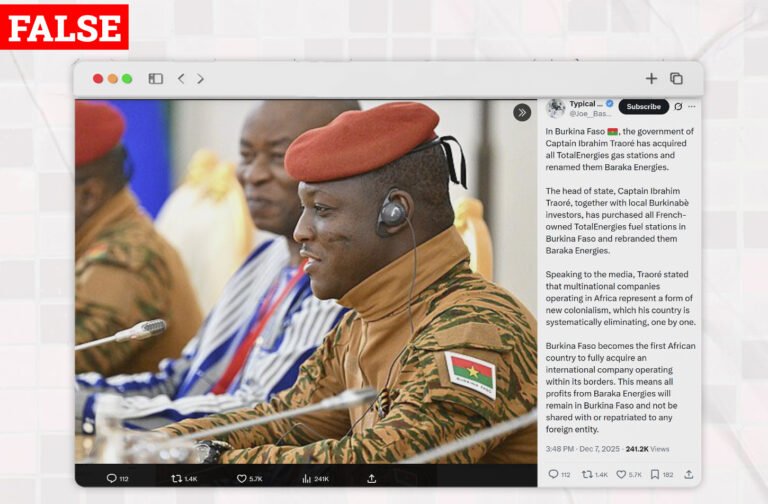 Has Burkina Faso Acquired All TotalEnergies Gas Stations In The Country? On December 7, 2025 an X user, @Joe_Bassey made a claim that the government of Captain Ibrahim Traoré personally acquired all TotalEnergies gas stations in Burkina Faso, rebranded them Baraka Énergies, and declared that Burkina Faso is the first