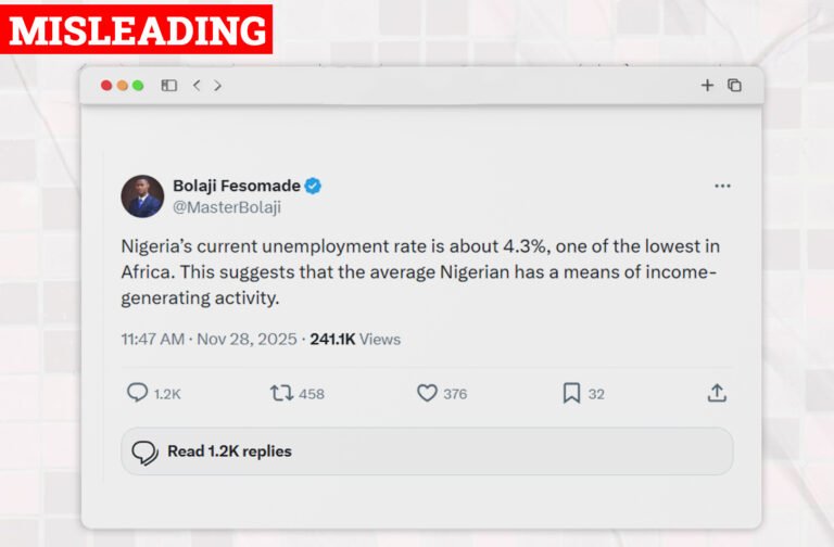 Is Nigeria’s Current Unemployment Rate At 4.3%, The Lowest In Africa? An X user @MasterBolaji has claimed that Nigeria’s current unemployment rate at 4.3%, is one of the lowest in Africa. Their post reads, “Nigeria’s current unemployment rate is about 4.3%, one of the lowest in Africa. This suggests that
