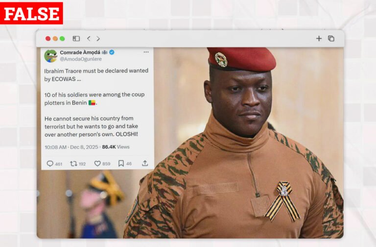 CLAIM: Ten Burkinabe Soldiers Were Among Coup Plotters In Benin Republic Umoh Umoh On December 8, 2025, an X user @AmodaOgunlere claimed that 10 Burkinabe soldiers were among the coup plotters who attempted to overthrow the Beninoise government. The post which has the image of Burkina Faso’s leader, Ibrahim Traoré,