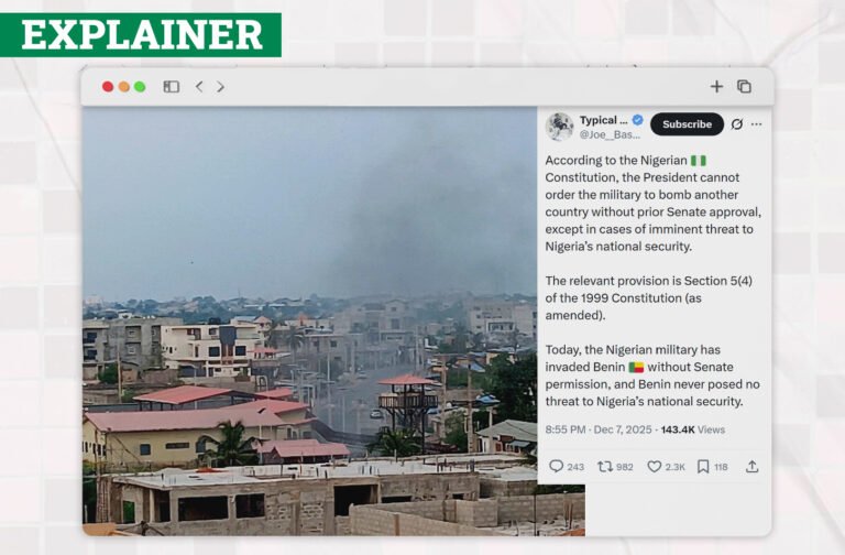 What The Nigerian Constitution Says About External Military Deployment On December 7, 2025 an X user @Joe_Bassey made a claim that the Nigerian President cannot order the military to bomb or enter another country without Senate approval. This claim was also posted on Facebook by @biafranupdate. As the claim spread,